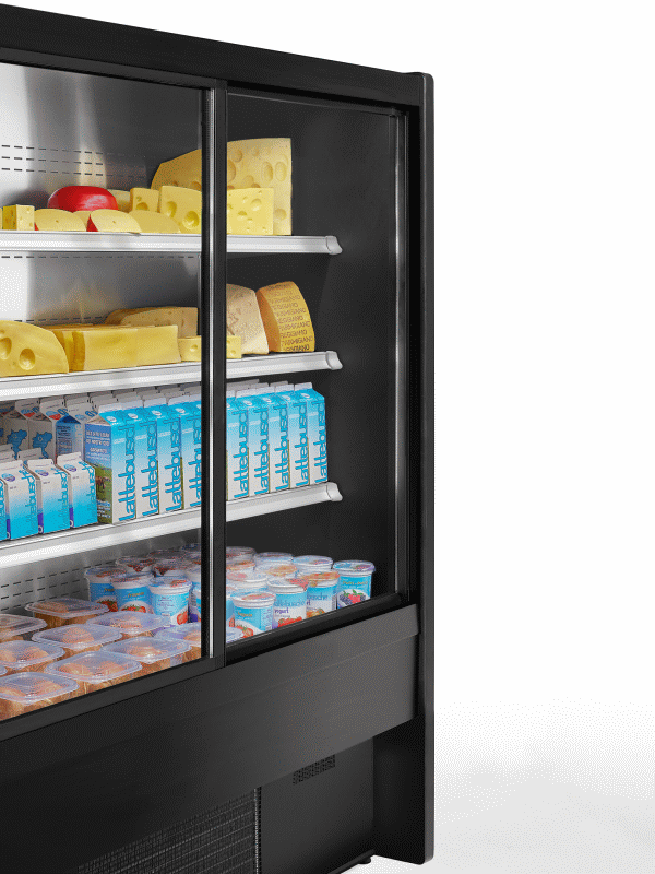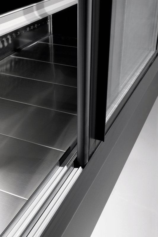 Isolierte Seitenteile schwarz Selbstschließende Schiebetüren aus Isolierverglasung Rahmen der Schiebetüren aus Kunststoff Elektronische Steuerung Digitale Temperaturanzeige Einge…