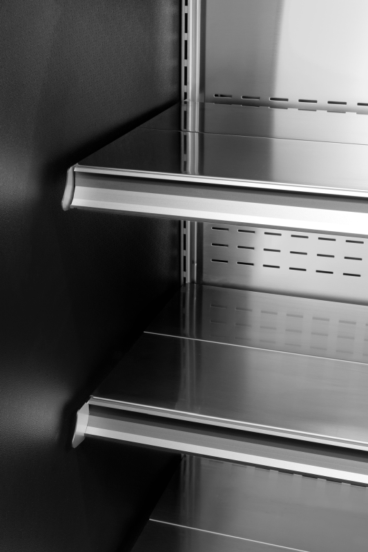 - Regalbodentiefe 340 mm, Belastung 20 kg je lfd. Meter