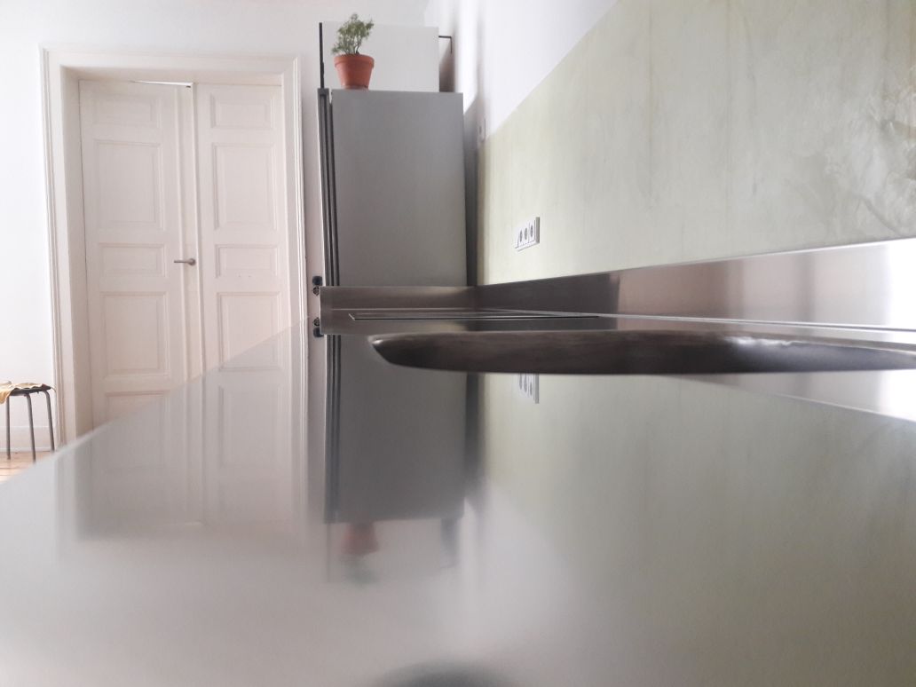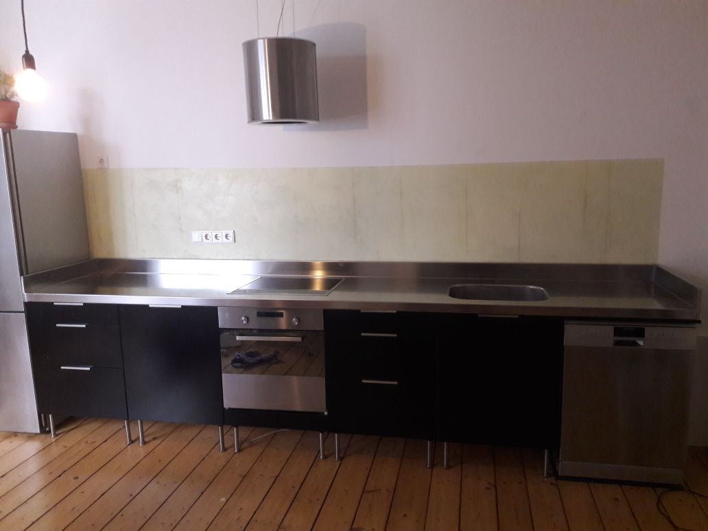 Edelstahl Arbeitsplatte als Küchen-Abdeckplatte von GastroXtrem Made in Germany nach Mass wahlweise in 1 oder 2 mm Materialstärke und mit Sondermassen.