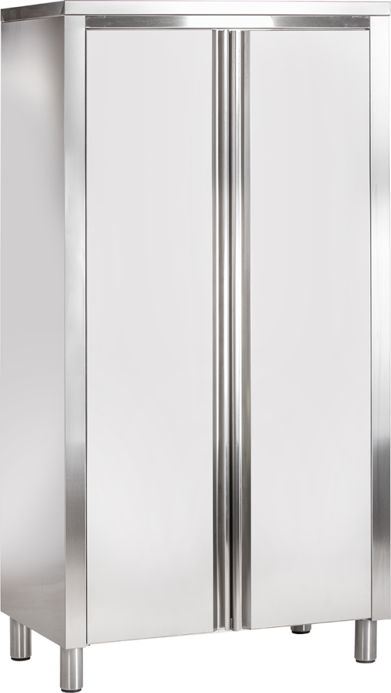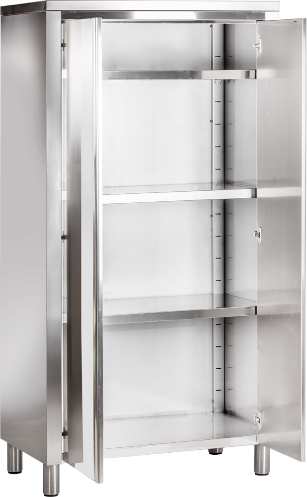 GeschirrschrankEdelstahl CNS 18/10 (AISI304)2 schallgedämmte Drehtüren3 höhenverstellbare EinlegebödenSchrankkorpus in selbsttragender KonstruktionHöhenverstellbare Stollenfüße, A…