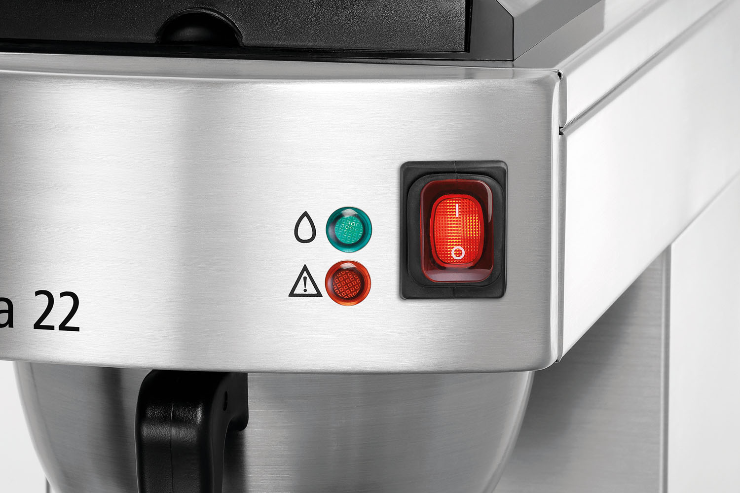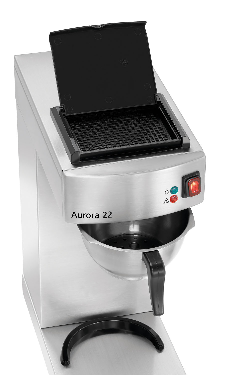 Die Edelstahl-Isolierpumpkanne der Aurora 22 fasst bis zu 1,9 Liter Kaffee – In 8 Minuten frisch aufgebrüht. Für eine optimale Wärmeübertragung sorgt das Heizelement aus Edelstahl. Die praktische Kanne mit Pumpsystem ermöglicht ein einfaches Handling im Self-Service-Bereich.