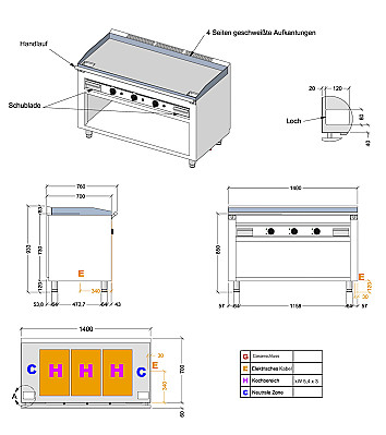 In unserem Online Shop für Asiabedarf kaufen Sie diese hochwertigen CASTA Grillplatten.CASTA Teppanyaki-Grill, Elektro, 3 Heizungen, 16,2 kW, Breite 140 cm, hartverchromt, Standgerät