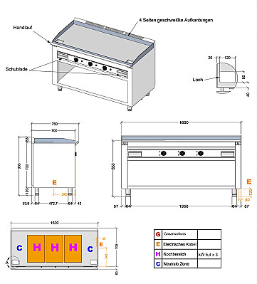 Produktinformationen "CASTA Teppanyaki-Grill, Elektro, 3 Heizungen, 16,2 kW, Breite 160 cm, hartverchromt, Standgerät"