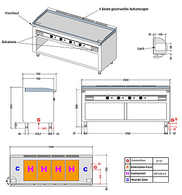 Technische Leistungen: 4 Brenner zu je 5,8 kW