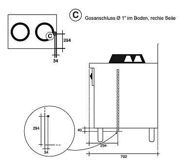 - Anschlußleistung: 28 kW Gas