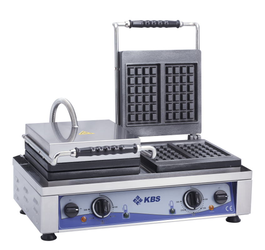 KBS Waffeleisen mit 2 festen Backplatten für 4x Waffeln 8x16x1,5cm
