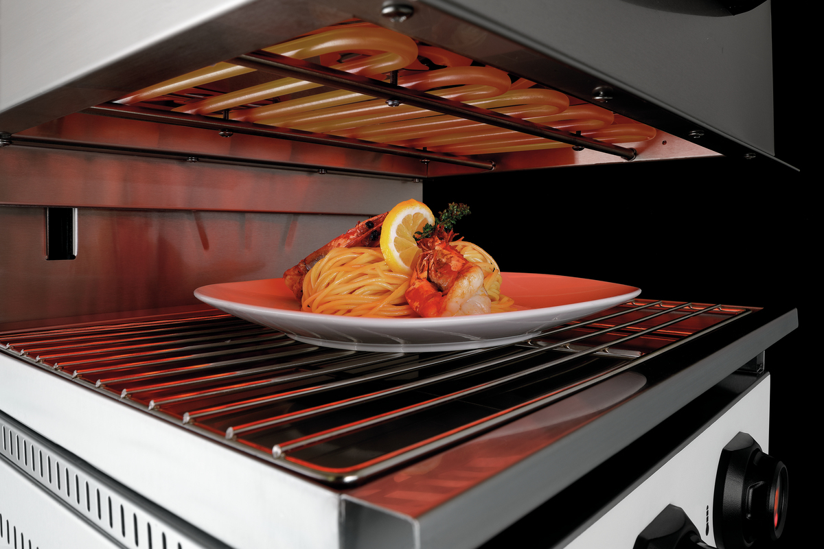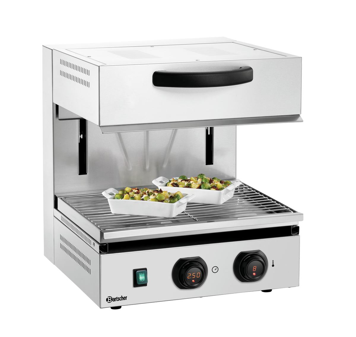 Der Salamander mit intelligenter MDI-Steuerung lässt keine Wünsche offen: die Wärmeabgabe lässt sich über die Lift-Funktion sowie über die exakte digitale Temperatur- und Zeiteinstellung regulieren. Für optimierte Arbeitsabläufe sorgen die Memory-Funktion und ein akustisches Signal nach Ablauf der Zeit. Mit dem energiesparenden Eco-Modus werden Speisen schonend warmgehalten und Kosten gespart.