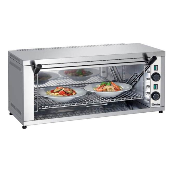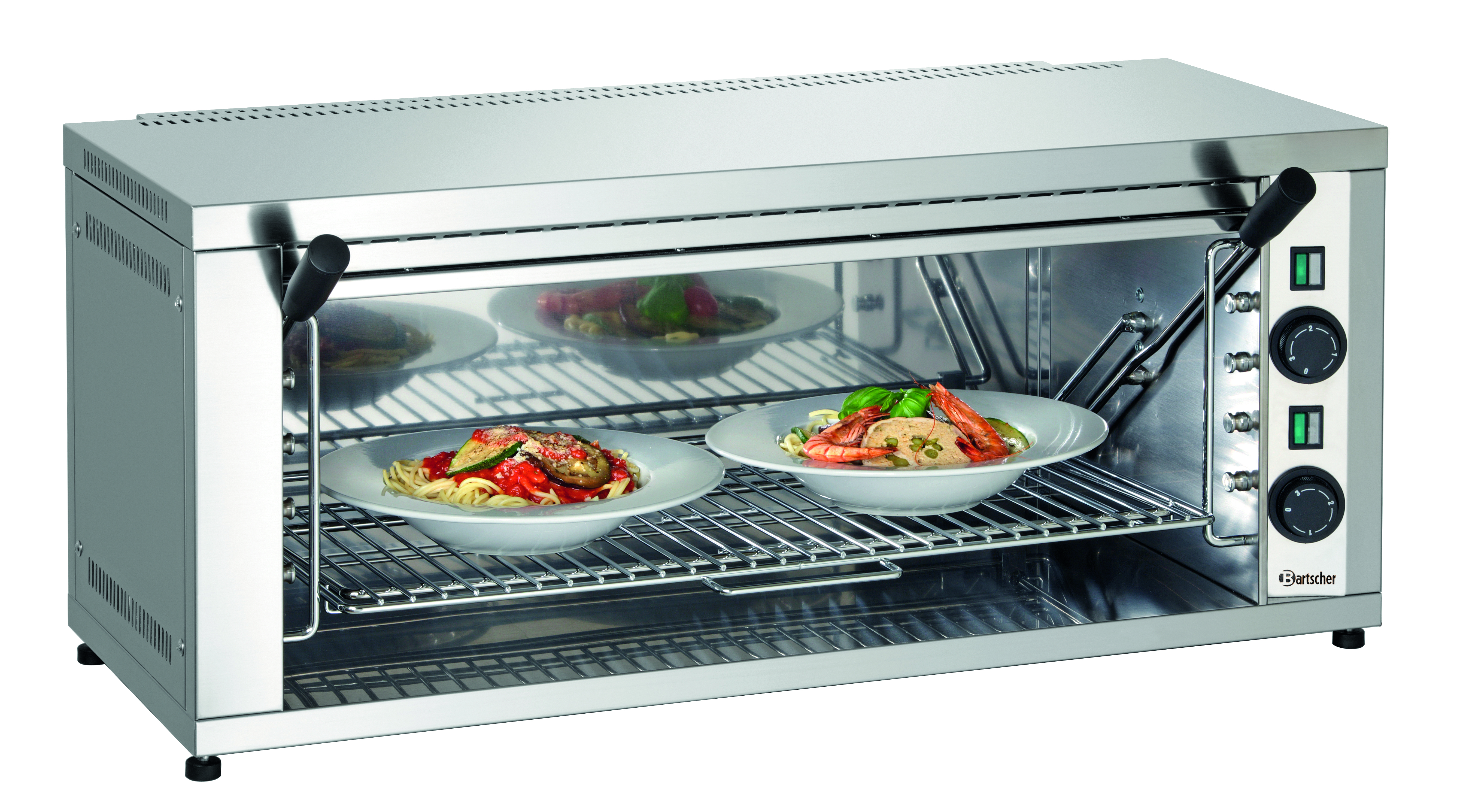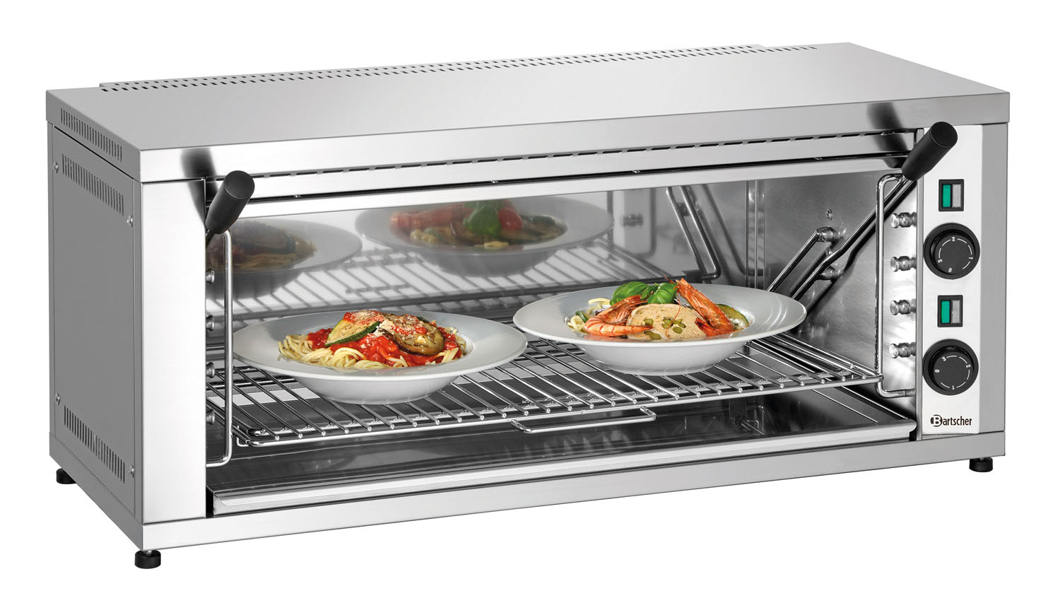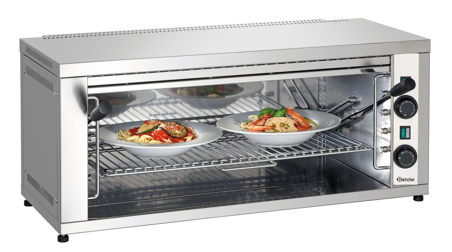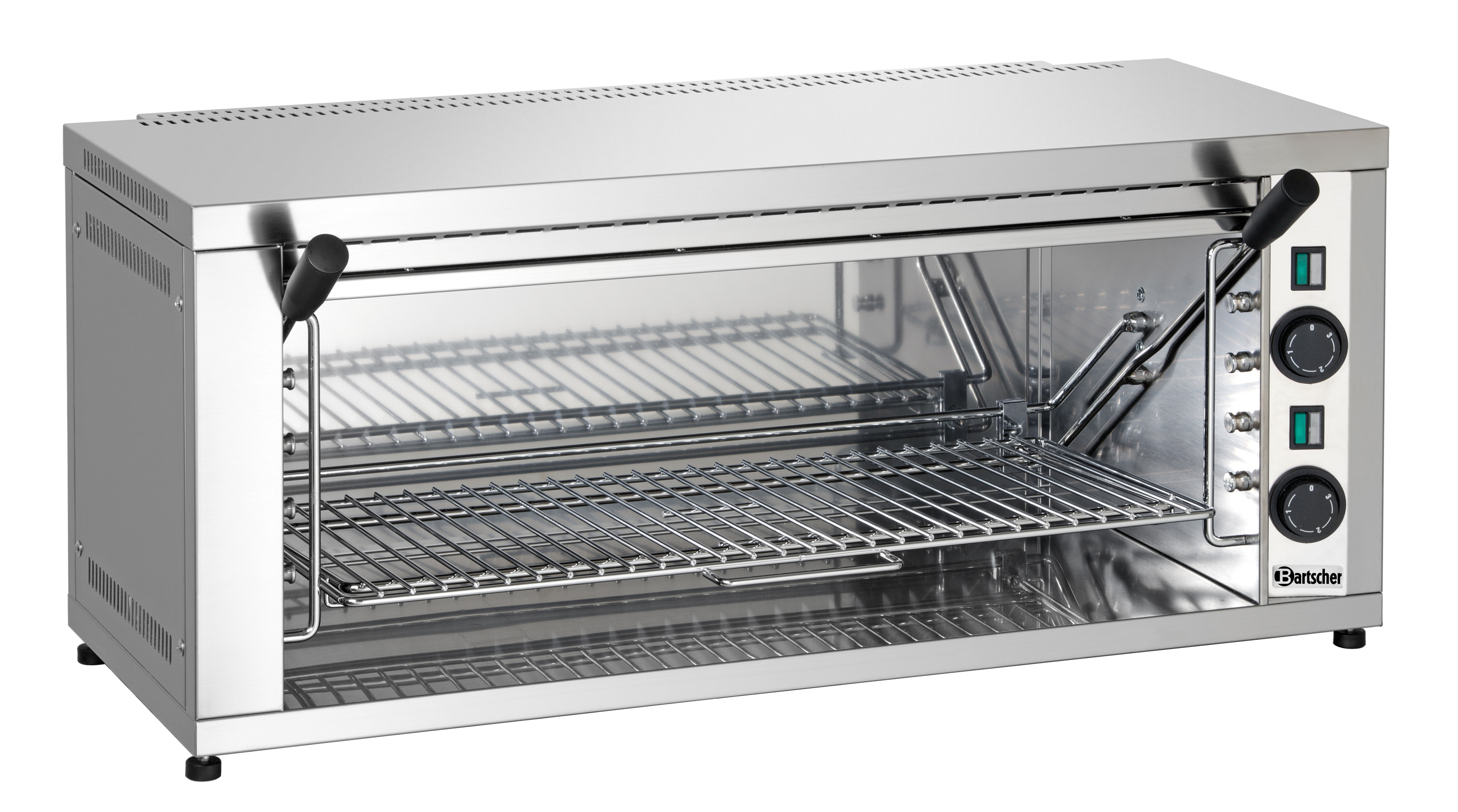 Mit diesem Elektro Salamander von Bartscher kaufen sie ein Gerät aus hochwertigem Edelstahl, welches einen Infrarot-Strahlheizkörper und zwei seperat einstellbare Heizzonen besitz…