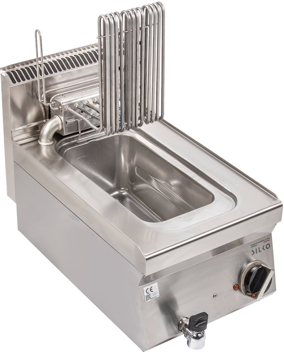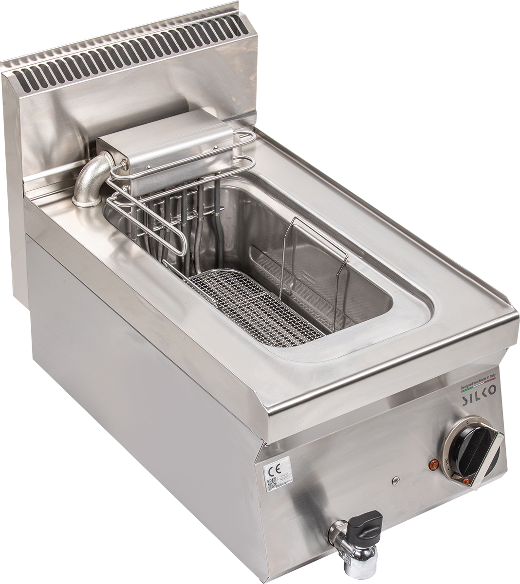 EdelstahlkorpusTiefgezogene Becken mit abgerundeten EckenGroßzügige Schaumzone, große KaltzoneFrontseitiger Ölablasshahn, gegen unbeabsichtigtes Öffnen gesichertElektroheizung im…
