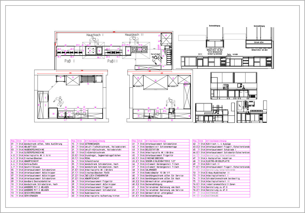 … oder den Aufbau der Kochblöcke und Kochzeilen …