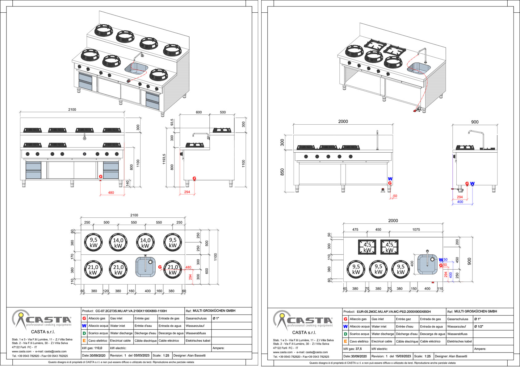 - Herdblöcke für die Großverpflegung mit Kochkessel und Kippbratpfannen,