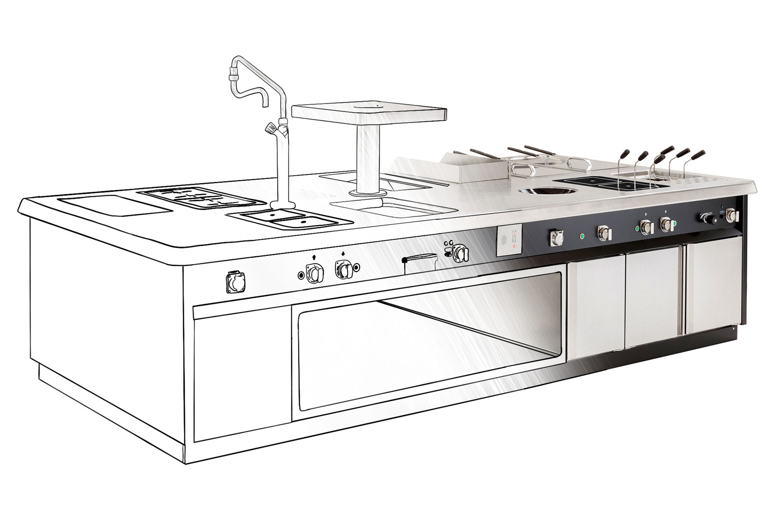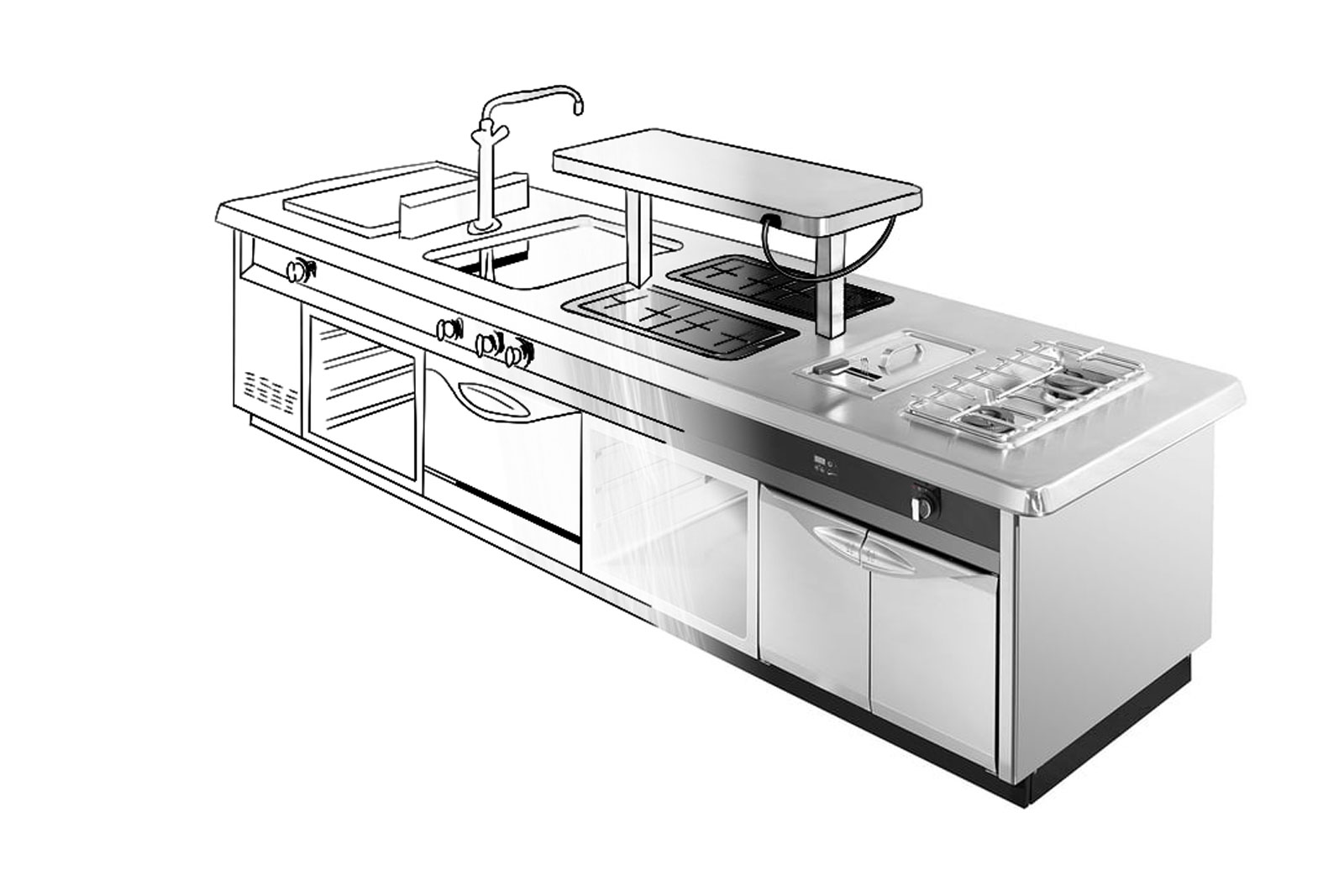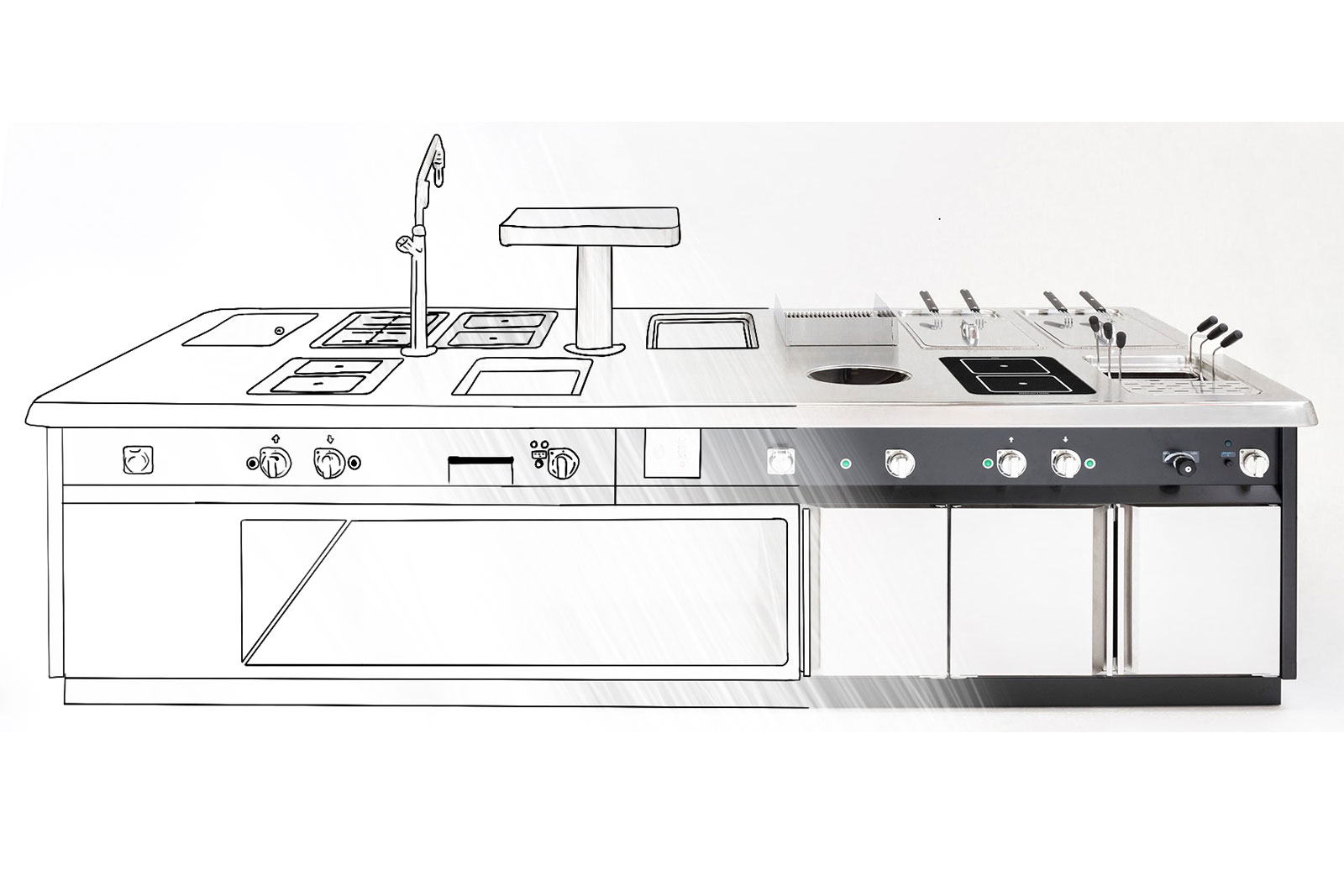 - Herdblöcke für den a la carte Bereich mit integrierter Servicestation,