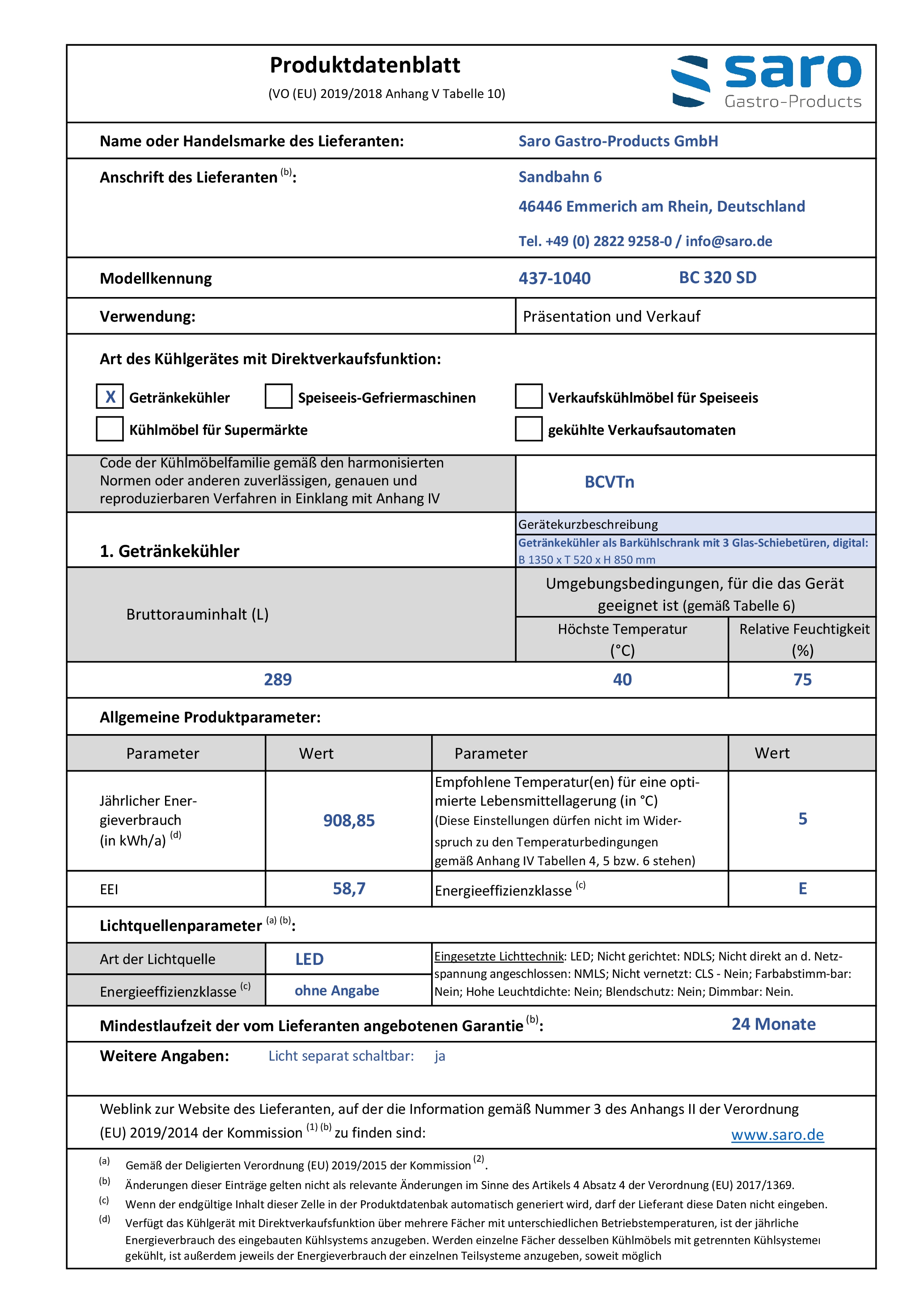 Produktinformationen "SARO Barkühlschrank mit 3 Schiebetüren BC 320SD"