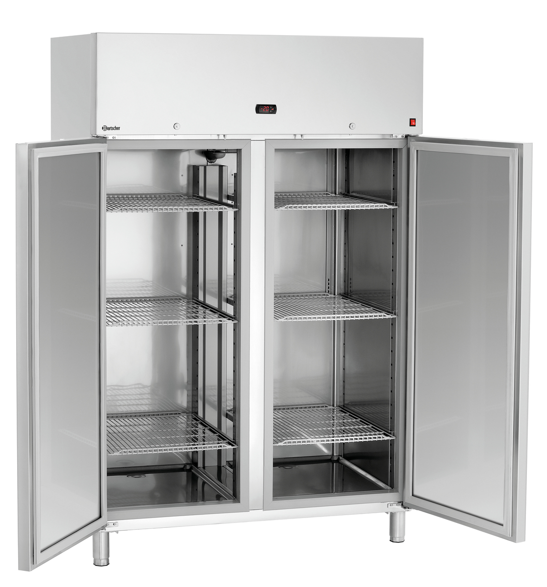 Der doppeltürige Tiefkühlschrank mit Einschüben im 2/1 GN-Format fasst durch seinen geräumigen Innenraum auch große Mengen an Gefriergut. Durch die zurückhaltende Optik passt sich dieser optimal in jede Küche.