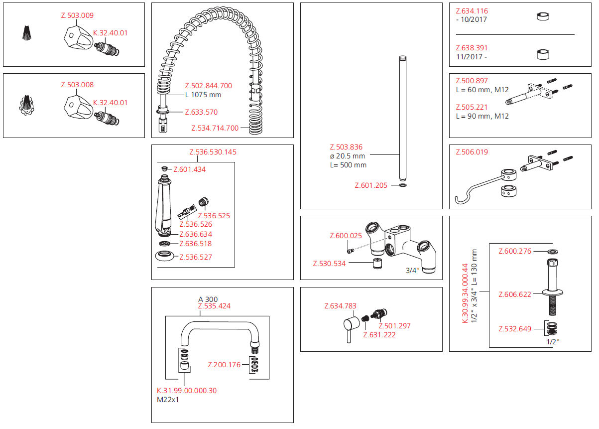 Passendes KWC 1/2" Oberteil Profi-Großküchenarmaturen der Serien KWC Gastro:
