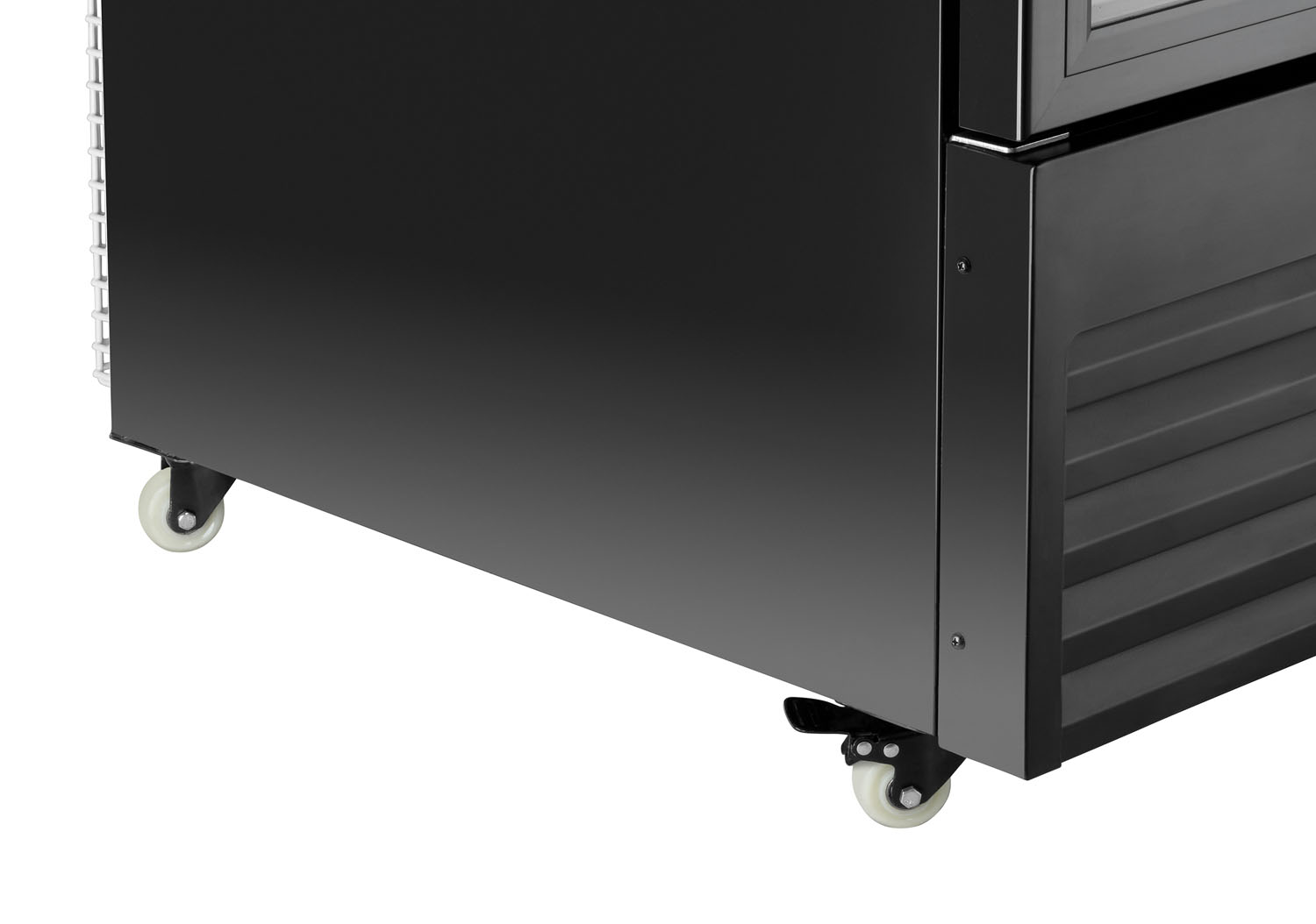 Kombination aus Kühlschrank und Tiefkühlschrank im ansprechenden schwarzen Design mit einem Fassungsvermögen von 430 Litern. Die Glastüren ermöglichen einen direkten Einblick auf die Speisen, die durch die separat schaltbare LED-Beleuchtung ins rechte Licht gerückt werden können.