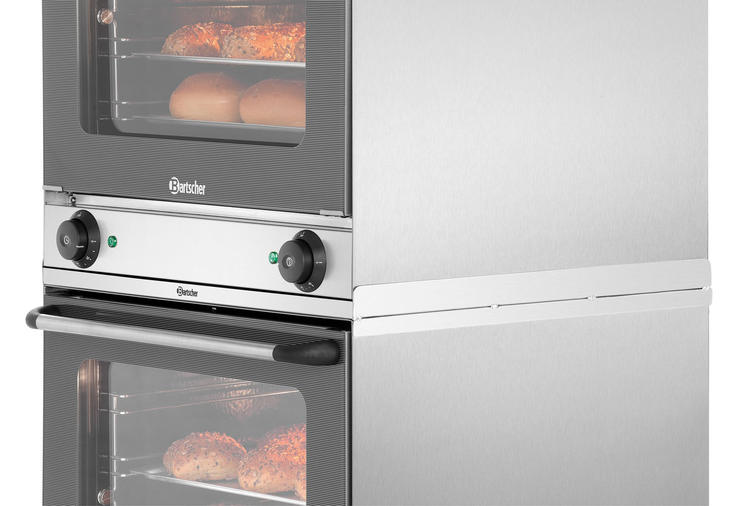Platzsparend und praktisch – Der Verbindungsrahmen ermöglicht das sichere Stapeln von 2 Heißluftöfen AT90 oder AT120. Fest verschraubt ist kein Verrutschen möglich. So kann wertvoller Platz in der Küche, in Tankstellen, Kiosken oder Bäckereien eingespart werden.