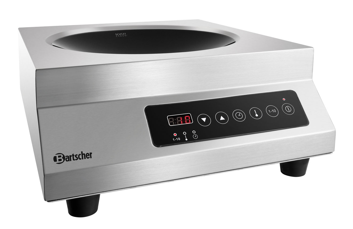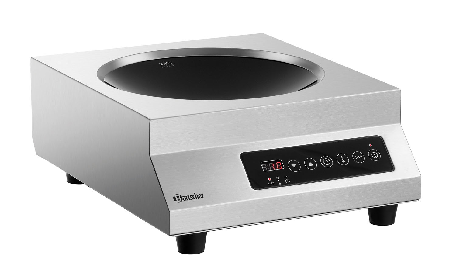 Der transportable Induktionswok mit 3500 Watt und 10 Leistungsstufen bietet volle Flexibilität. Optisch besticht er durch die hochwertige SCHOTT CERAN ® Kochmulde und das Touch-Control-Bedienfeld mit Digitalanzeige.