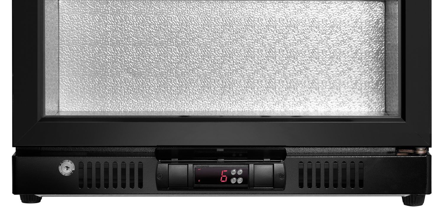 Der Barkühlschrank mit 112 Litern Fassungsvermögen, Innenbeleuchtung und doppelverglaster, selbstschließender Tür kühlt Ihre Getränke zuverlässig. Die elektronische Regelung mit Digitalanzeige ermöglicht die exakte Einstellung der gewünschten Temperatur.