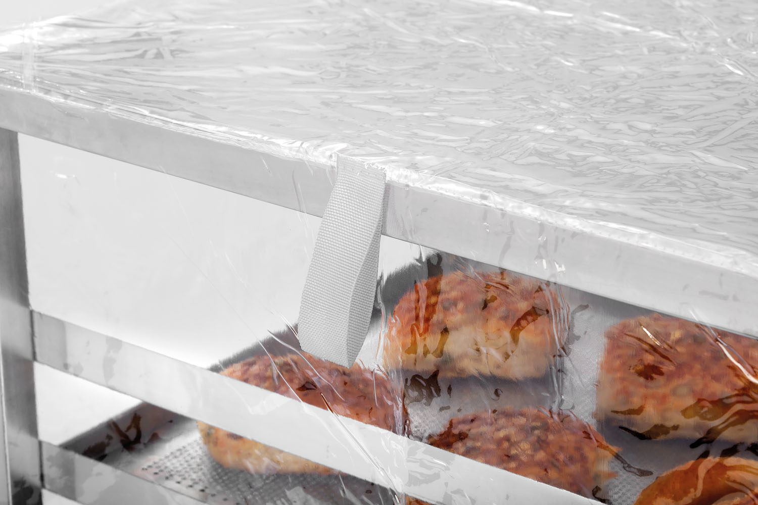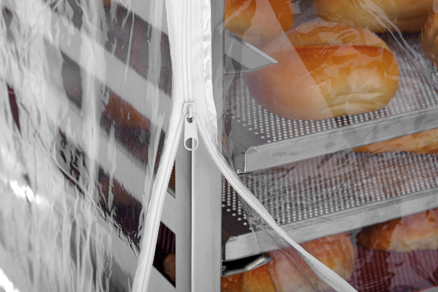Die zum Euronormwagen AEN700-6040 passende transparente Abdeckhaube schützt bei Transport und Lagerung vor Staub und Unreinheiten – sogar in Kühlräumen. Die Reißverschlüsse ermögl…