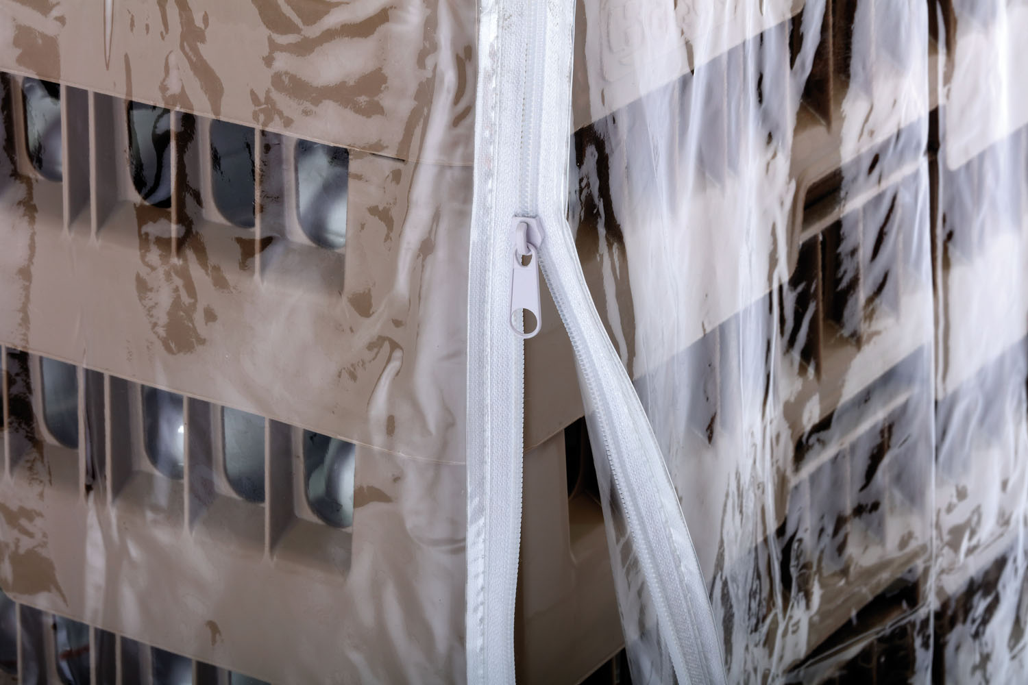 Die zum Geschirrkorbwagen TGS100 passende transparente Abdeckhaube schützt bei Transport und Lagerung vor Staub und Unreinheiten – sogar in Kühlräumen.