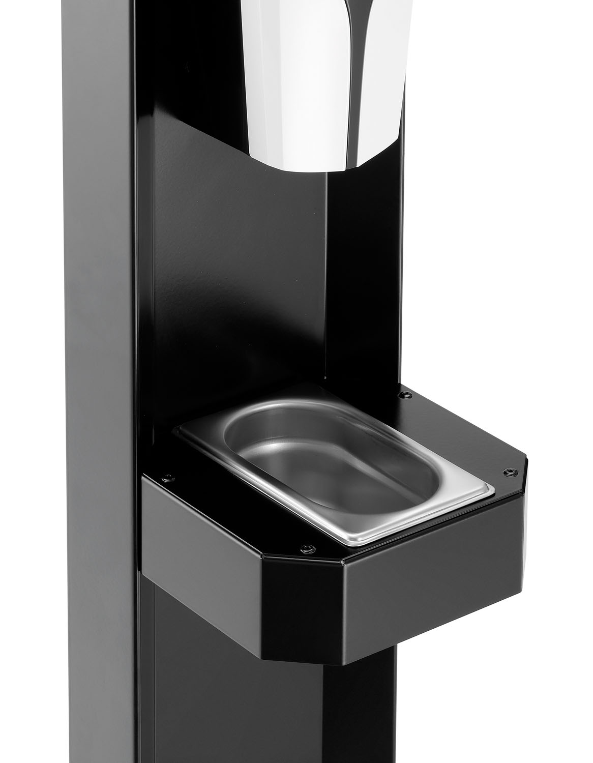 Hände-Hygiene wird zu jeder Zeit groß geschrieben. Mit der mobilen Desinfektionssäule kann der optional erhältliche Desinfektionsspender in jedem Eingangsbereich ganz flexibel platziert werden.