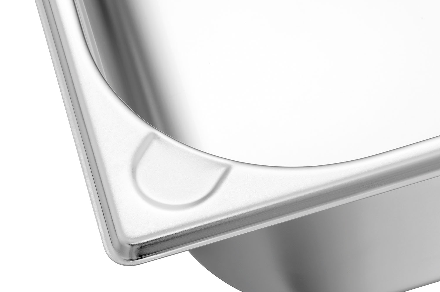 GN-Behälter nach EN 631 aus rostfreiem Chromnickelstahl mit seidenmatter Oberfläche