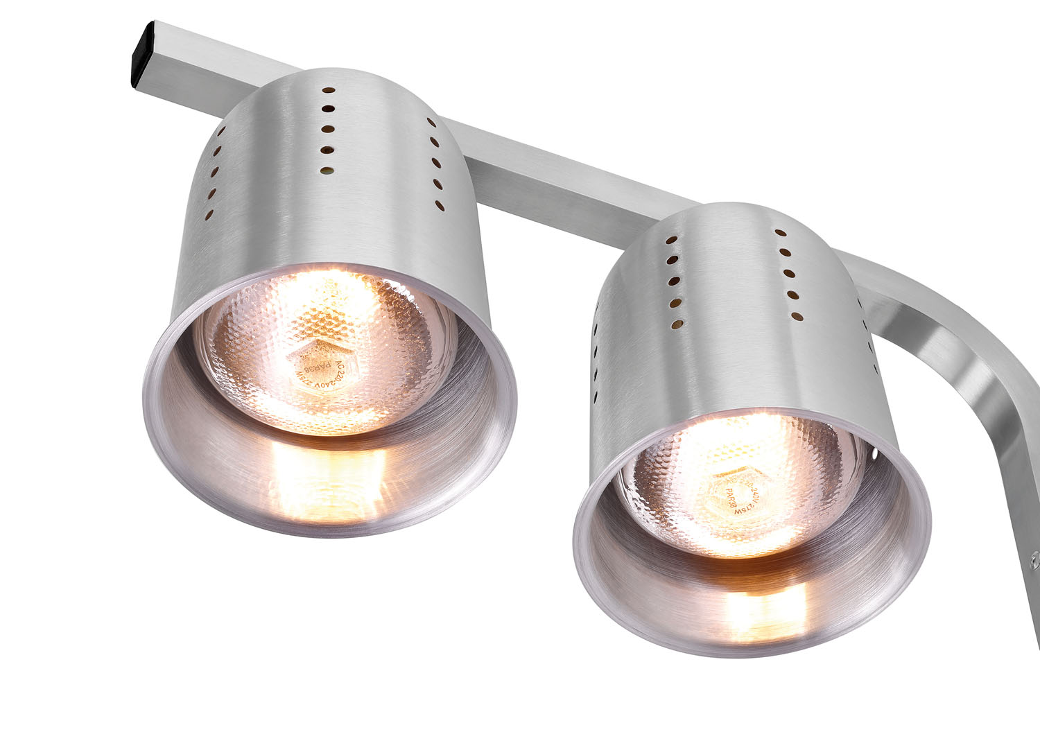 Ob an Buffets, bei Caterings oder in Kantinen – Die beiden Wärmelampen mit belüfteten Aluminiumreflektoren sorgen für eine zielgerichtete Wärmeabgabe. So können Speisen in Behälte…