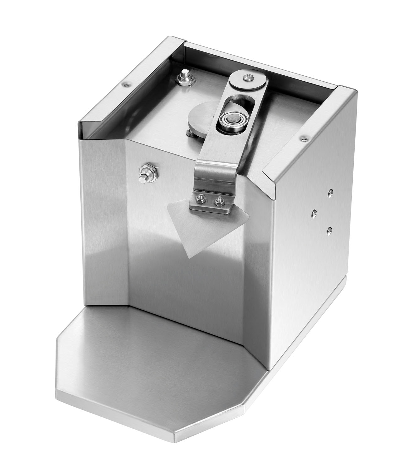 Elektrischer Currywurstschneider mit praktischem Dreiecksmesser und abnehmbaren Trichter für mehr Hygiene. Die Scheibenstärke lässt sich stufenlos regulieren.