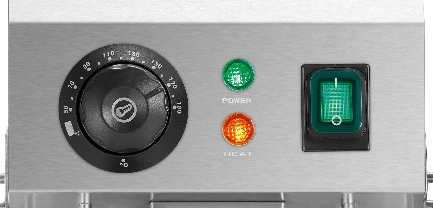 Die Doppel-Fritteuse bereitet verschiedenste Snacks schnell und zuverlässig zu. Dank des praktischen Fettablasshahns und des schwenkbaren Heizelements ist auch die anschließende Reinigung zügig erledigt.
