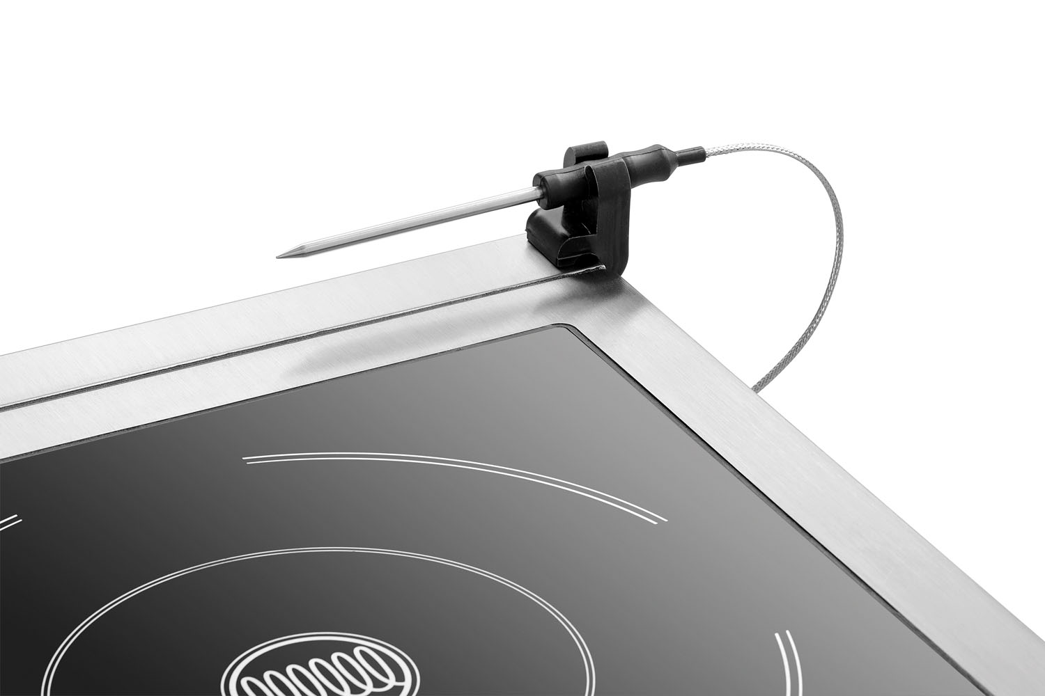 Mit hohem Standard mobil und platzsparend kochen – Dank des Kerntemperaturfühlers lassen sich mit dem 3500 Watt starken Induktionskocher Speisen wie Steaks präzise zubereiten. Verbunden mit der genauen Einstellung von Leistung, Temperatur und Zeit gelingt jedes Gericht.