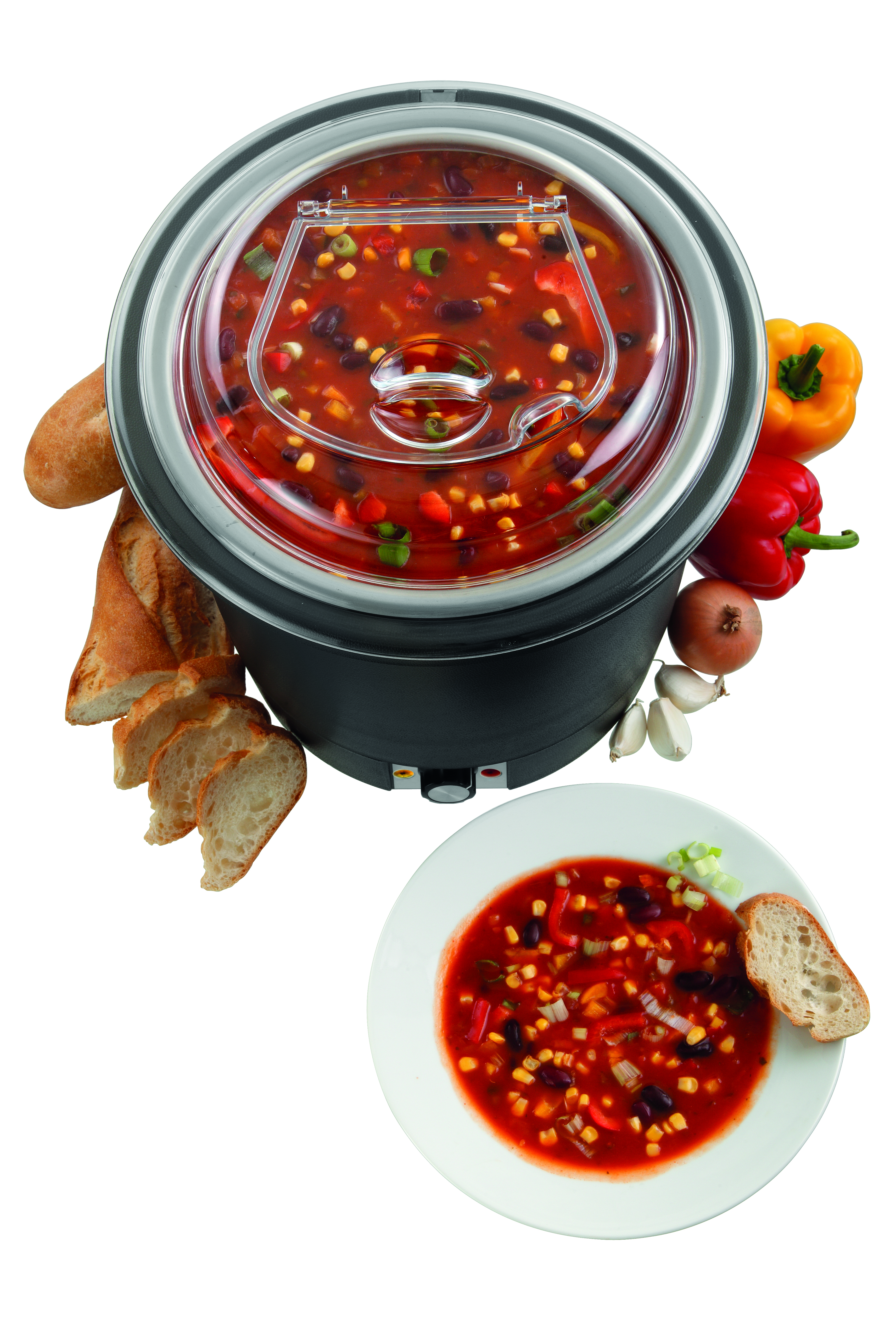 Der durchsichtige Polycarbonat-Deckel ermöglicht jederzeit einen Einblick in den Suppentopf. Kein umständliches überprüfen der Füllstände von Suppen oder Soßen - kein unnötiger Wärmeverlust.