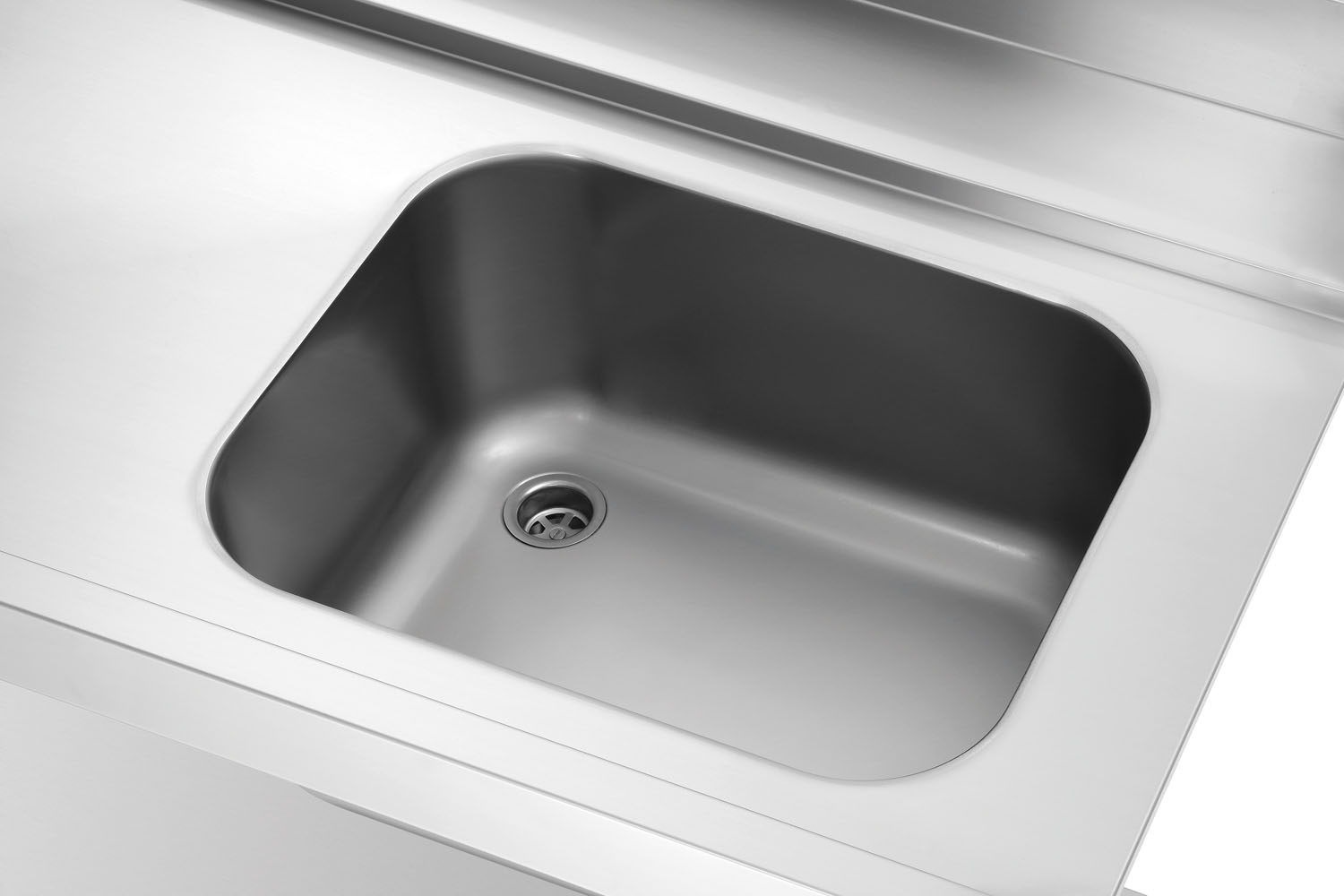Die 1,2 m breite Vorabräumung mit Spüle ist ausgelegt für den linksseitigen Anbau an die Bartscher Durchschubspülmaschinen DS. Ein Grundboden bietet Abstellfläche für Spülkörbe.
