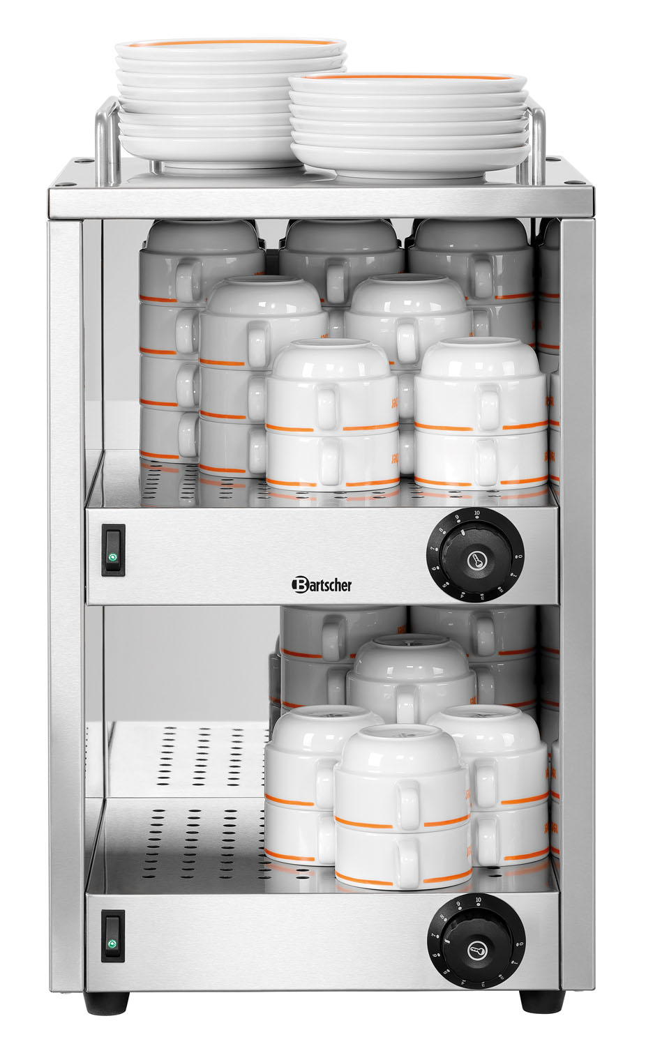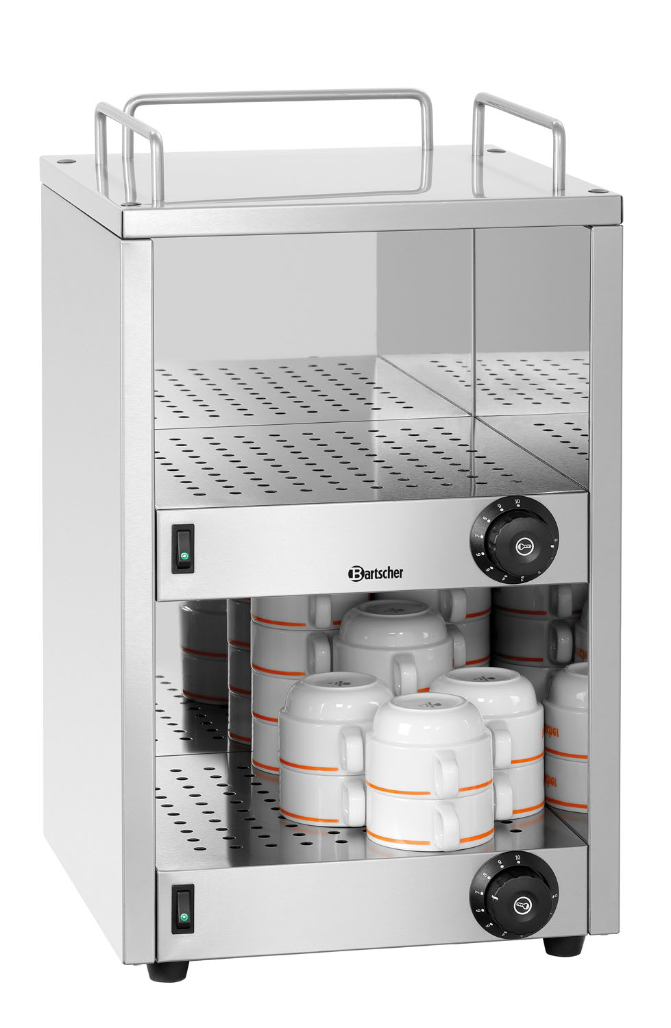 Vorgewärmte Tassen für mehr Kaffeegenuss – Die getrennt schaltbare Wärmezufuhr lässt sich für beide Ebenen stufenlos regulieren.