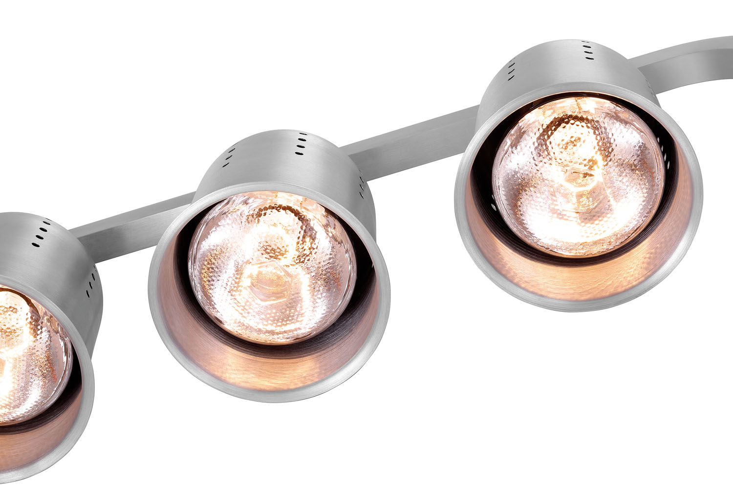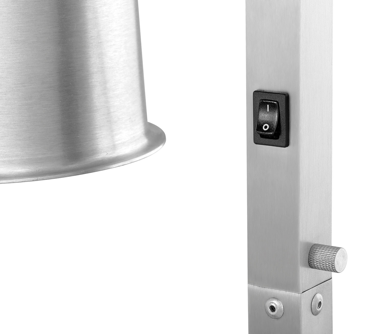 3 Wärmelampen mit belüfteten Aluminiumreflektoren sorgen für eine zielgerichtete Wärmeabgabe. Die Stellfläche bietet Platz für Behälter bis zu 2/1 GN und ist somit bestens für große Buffets, Caterings oder Kantinen geeignet.