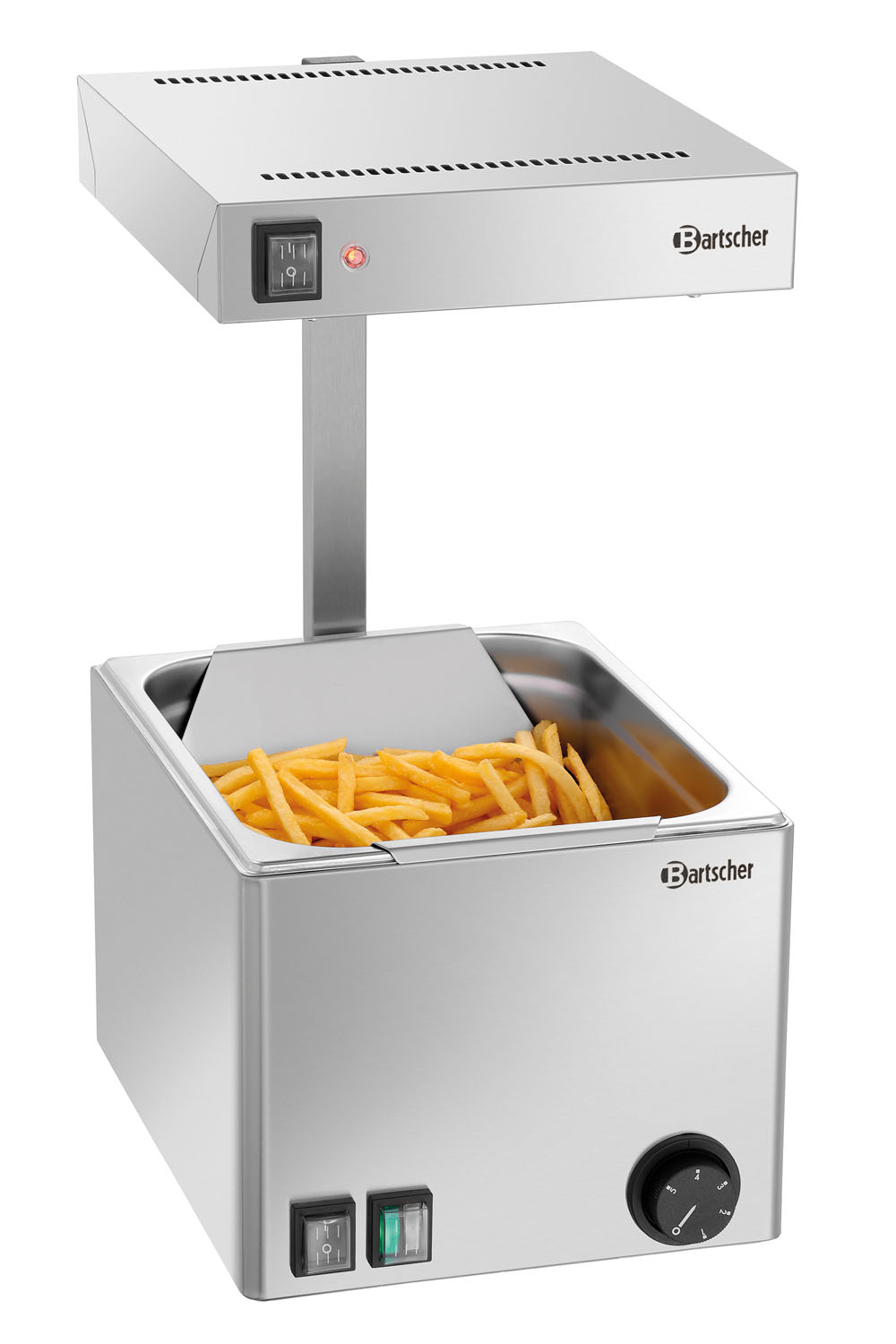 Die Wärmelampe ist die perfekte Ergänzung zu dem Pommeswärmer 12-150. Nach einer schnellen Montage können mit zusätzlichen 500 Watt die Pommes-Frittes von oben warmgehalten werden.