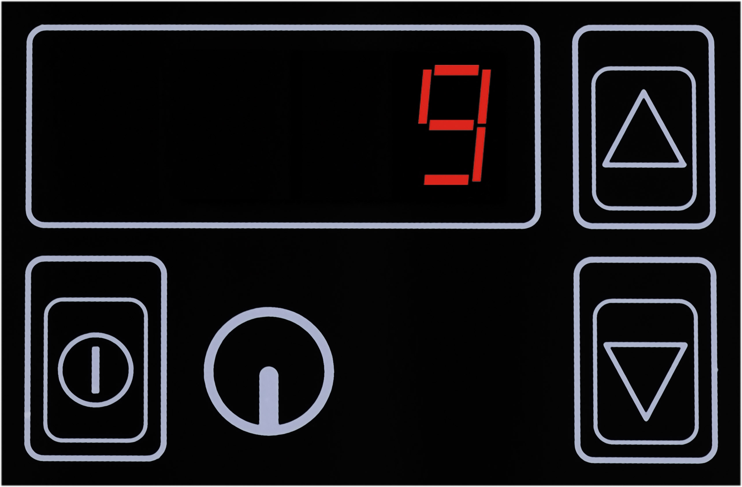 - integrierte Sensorbedienfläche 9-stufig in der 6 Millimeter Glaskeramik von Schott