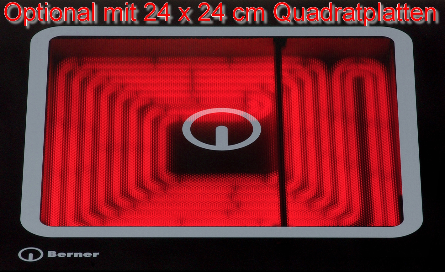 - Bei Ceranfeldern optional quadratische Kochzonen lieferbar