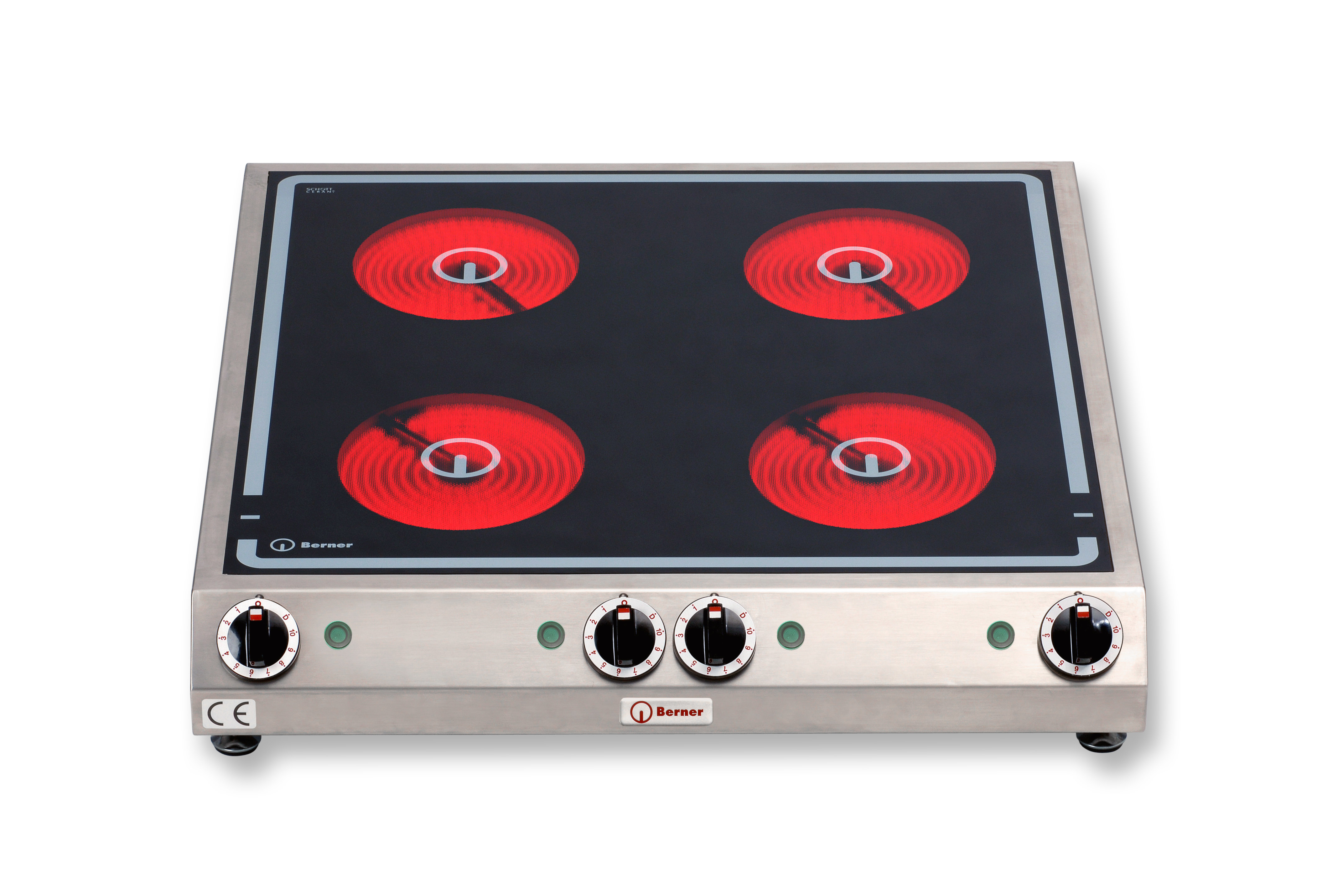 Gastronomie-Ceranherd einmal anders. Berner bietet interessante Tischgeräte mit 4 Kochzonen als Cerankochfeld zu einem sehr interessanten Preis. Das BS4SPK ist ideal als Austauschgerät für kleinere Gastronomieküchen geeignet sowie als flexibel einsetzbares Zusatzkochfeld für die Eventküche oder beispielsweise Einsätze in mobilem Catering. Wir liefern auf Wunsch gerne einen Edelstahlarbeitstisch mit reduzierter Höhe als passenden Unterbau..