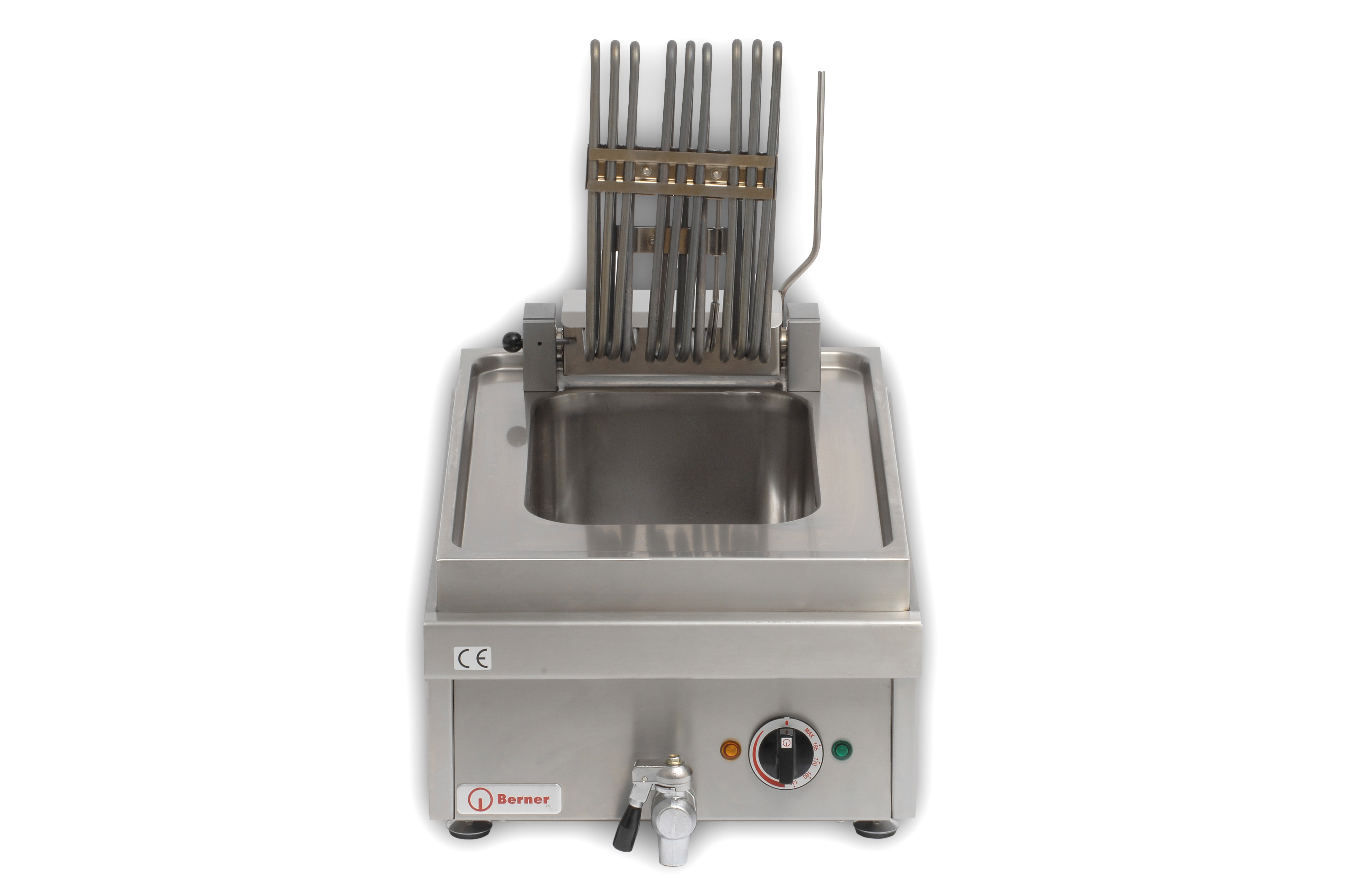 Berner bietet in der Produktreihe System 60/20 eine Auswahl leistungsstarker Doppelbecken-Fritteusen für die Gastronomieküche. Die Berner BF2KTT beispielsweise liefert 2 x 8.000 Watt auf die beiden 8 Liter Frittierbecken. Die schwenkbaren Heizstäbe erleichtern die Reinigung und die serienmäßig mit Frittierkorb, Grobfilter und Deckel gelieferte Tisch-Doppelfritteuse kommt steckerfertig ins Haus. Zu allen Geräten dieser Baureihe liefert Berner Induktion auf Wunsch einen passenden Edelstahl-Unterbau. Achja, der reinigungsfreundliche Fettablaßhahn an der Gerätefront ist komplett aus Edelstahl gefertigt. Eben Top-Qualität aus dem Hause Berner Kochtechnik..
