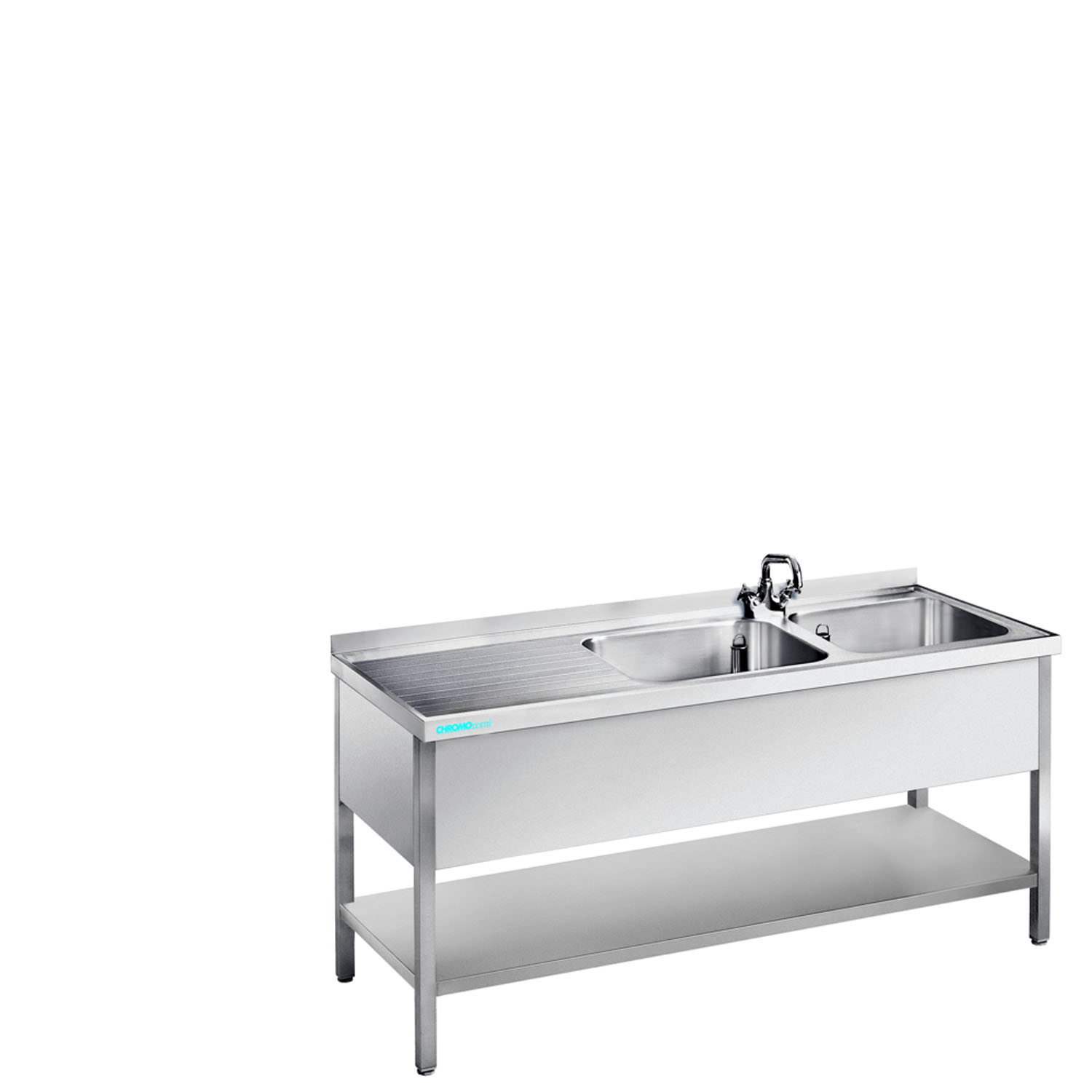 Produktinformationen "CHROMOnorm Edelstahl Spültisch mit 2 Becken mit Zwischenboden - verschiedene Ausführungen"