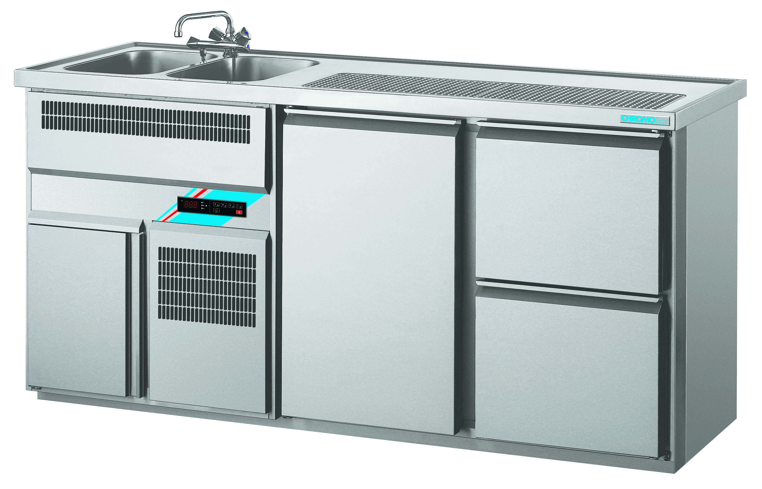 Produktinformationen "CHROMOnorm BIERTHEKE GN 1/1 - 2 BECKEN LINKS - 1 TÜR - 2 ZÜGE 1/2 "