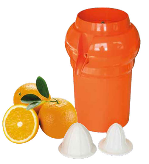 Zwei Presskegel (Orangen/Limetten)Die Saftpresse PA 96 ist ein sehr leises und robustes Gerät aus lebensmittelechtem Kunststoff. Sie besitzt einen speziell geformten Presskegel mit 1.500 U/min.