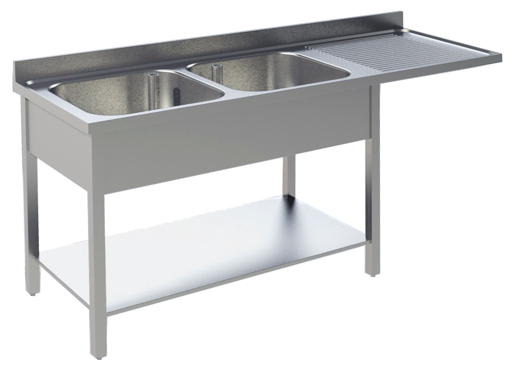 - Abtropffläche gerillt (ab 1400 mm Breite/600 mm Tiefe & 1600 mm Breite/700 mm Tiefe), mit
