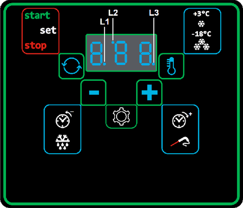 - Temperaturbereich Schnellabkühlung +90 °C bis +3 °C