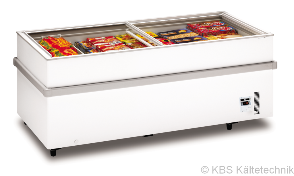 Impulse Tiefkühltruhe Snow 20 Typ KBS 309904 als Nachfolger von 30990 ist für Eis und Tiefkühlprodukte mit Glasschiebedeckel ausgeführt.