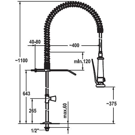 Sie kaufen hier bei uns im Online Shop diese Gastronomie-Geschirrwaschbrause mit Absperrrventil als hochwertige und zuverlässige Spültischarmatur für reine Durchschubspülerzeilen mit Vorspülbecken.
