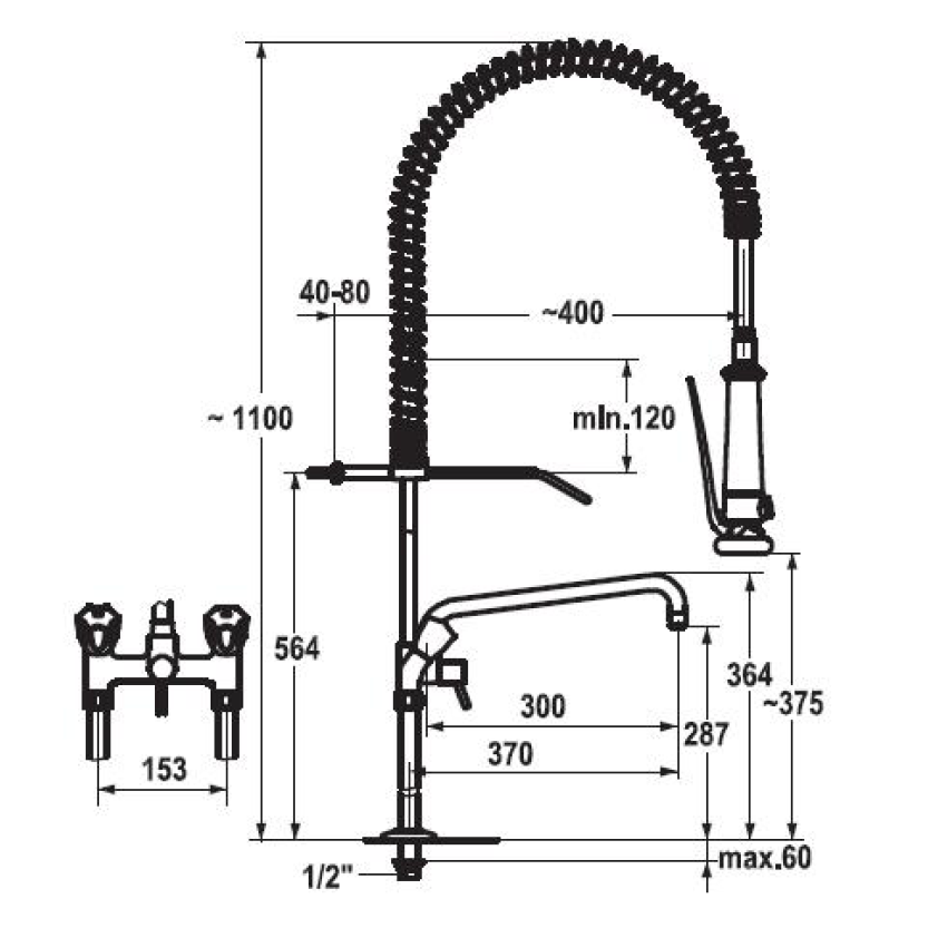 KWC Gastro K.24.42.64.000C71 Geschirrbrause mit Schwenkauslauf Doppelrohr - Zweigriffmischer