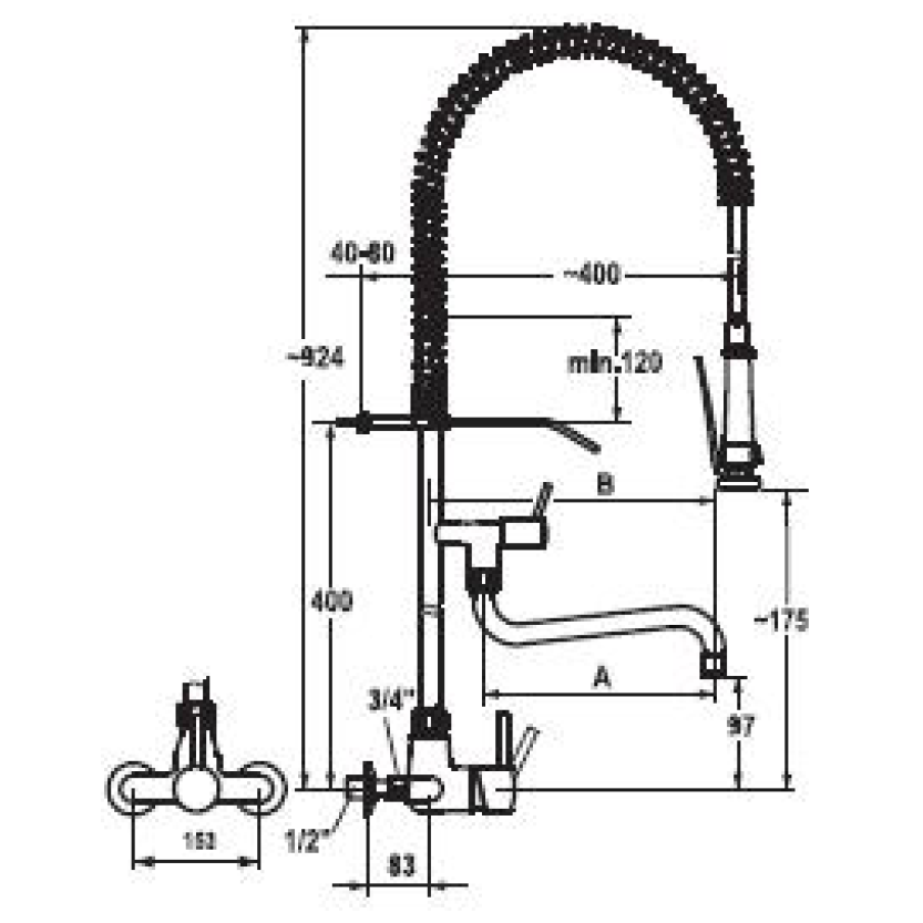 Produktinformationen "KWC 24.502.164.000 Gastro Wand-Geschirrbrause mit Schwenkauslauf - Einhebelmischer"