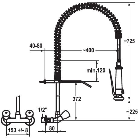 KWC K.24.42.70.000C78 Gastro Wand-Geschirrbrause - Zweihebelmischer